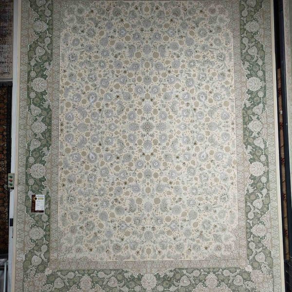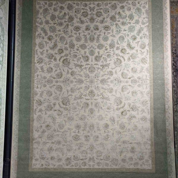 فرش ماشینی زمرد مشهد_کد13005_رنگ کرم صدفی_1200شانه_3600تراکم