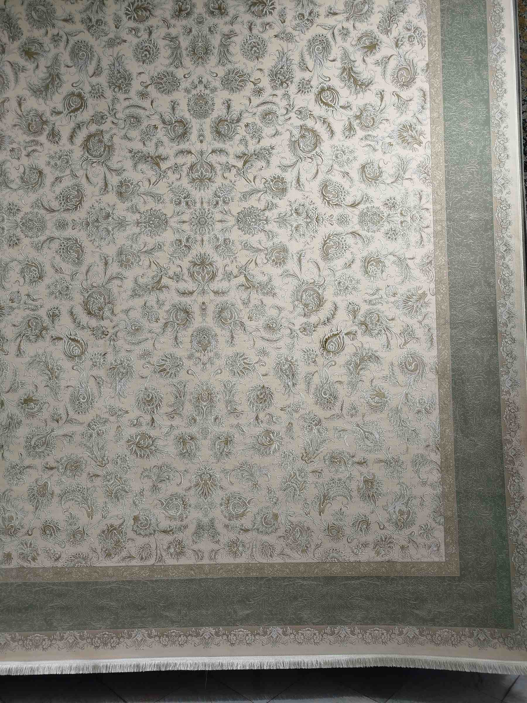 فرش ماشینی خاطره کویر کاشان-طرح گل گندم-رنگ سیلور-1200شانه-3600تراکم