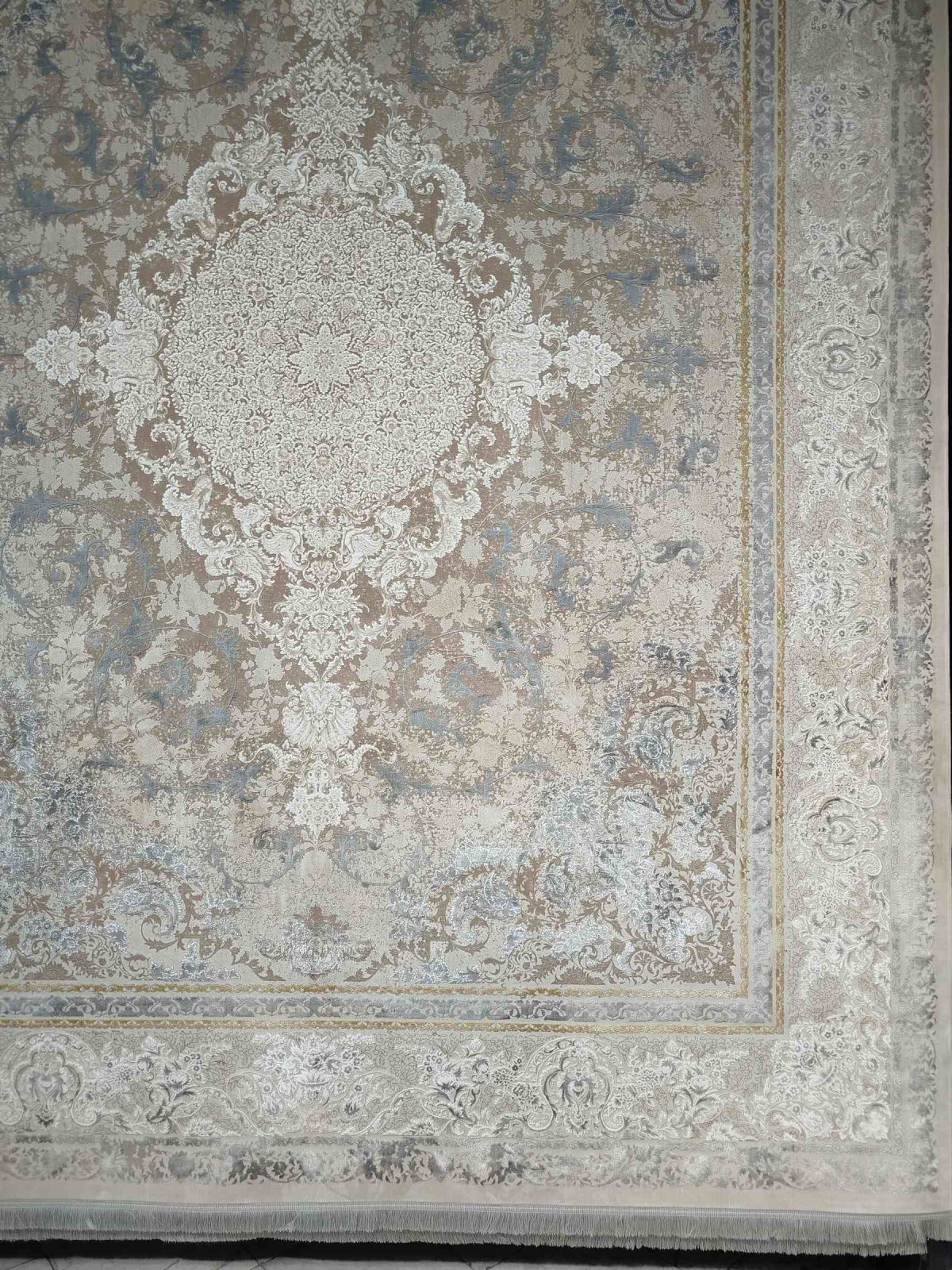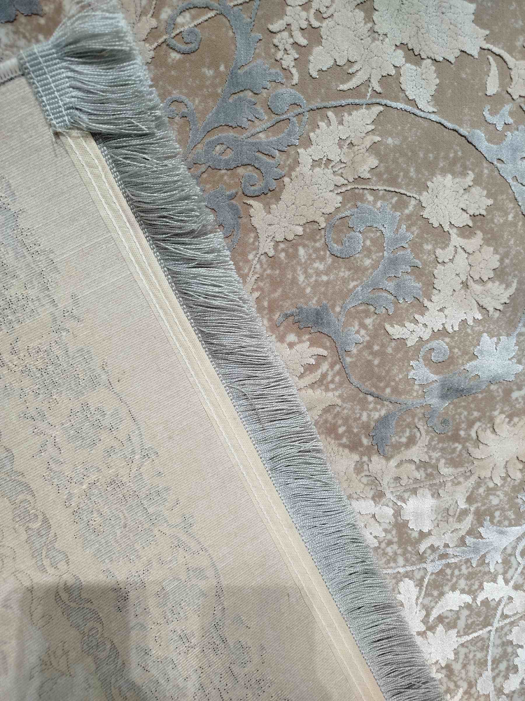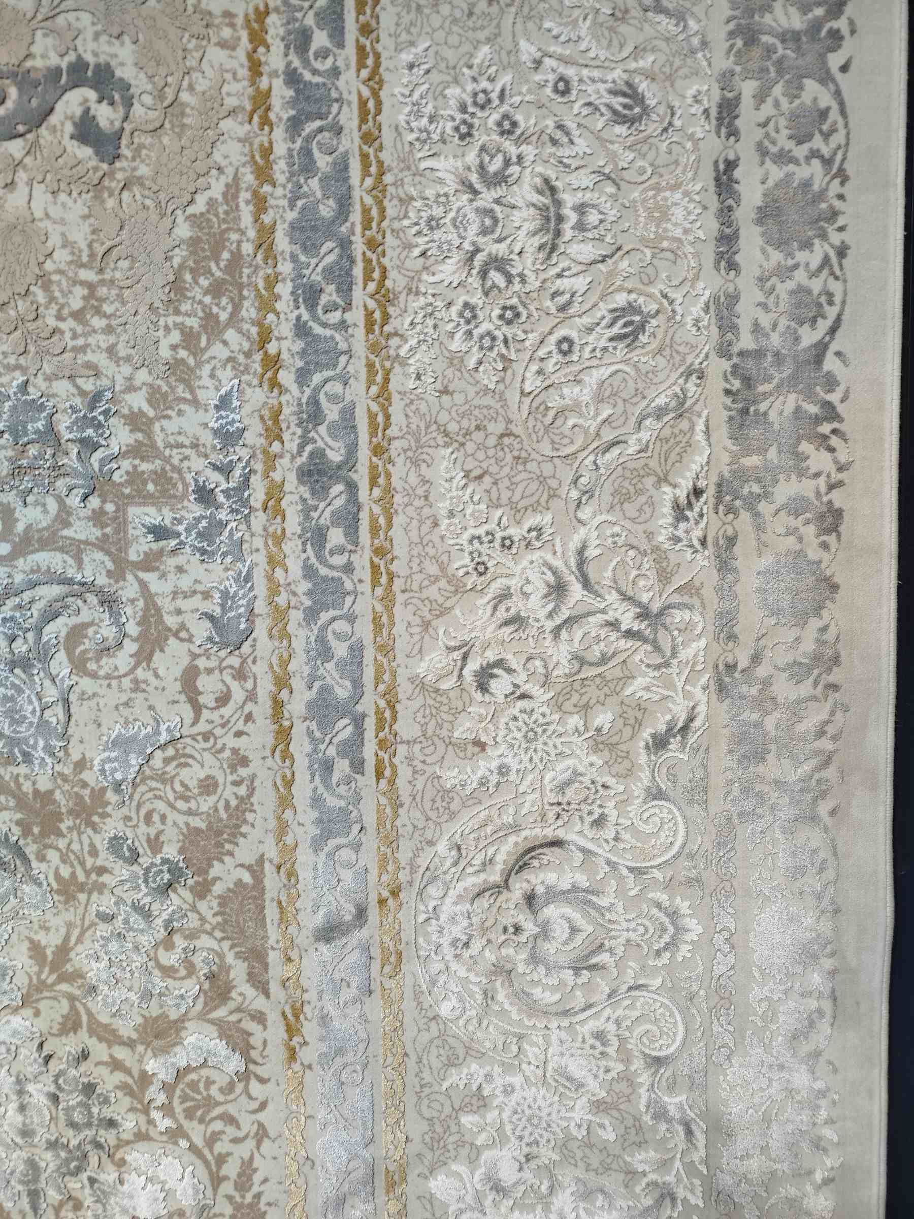 فرش ماشینی زمرد مشهد_کد13005_رنگ کرم صدفی_1200شانه_3600تراکم