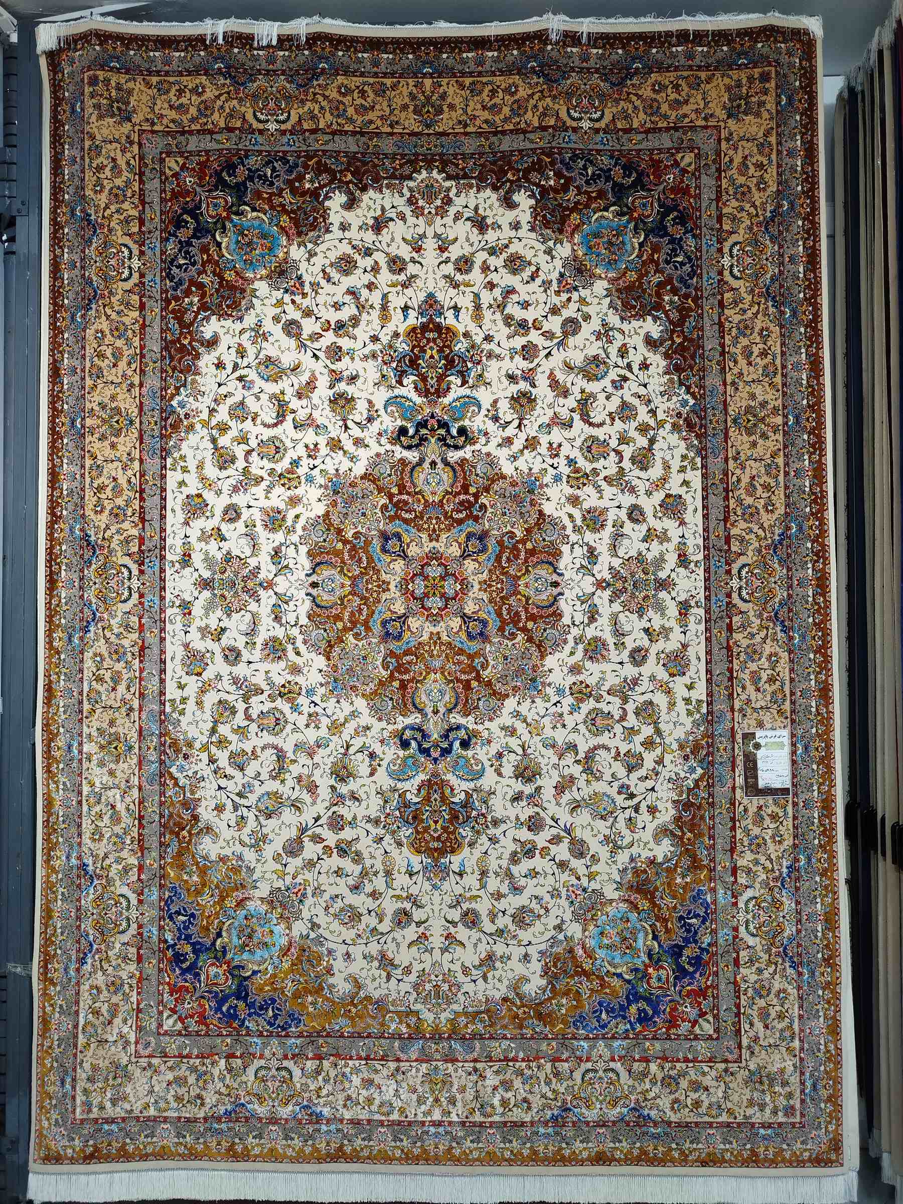 فرش ماشینی-پشمی طبیعی-ابریشمی گیاهی-کد3230-کرم