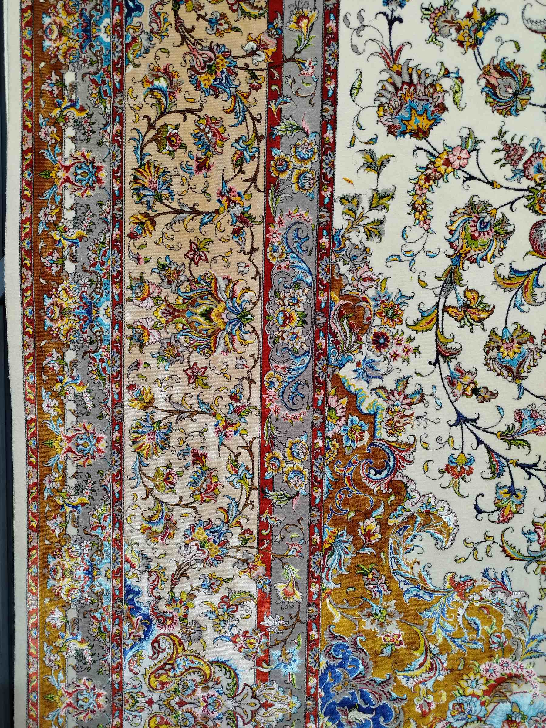 - فرش پشم ابریشم 120 رج و دستبافت گونه میباشد.