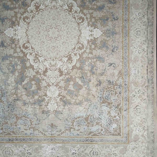 فرش ماشینی زمرد مشهد_طرح گل ابریشم_کد12001_رنگ الماسی_1200شانه_3600تراکم